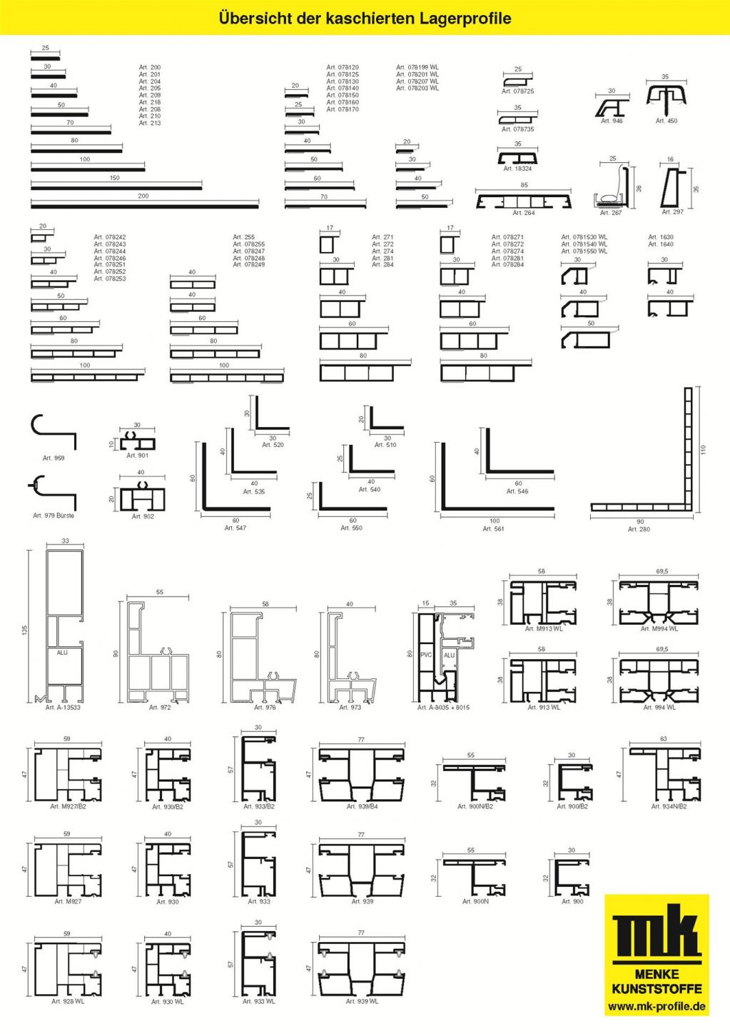 Übersicht der kaschierten Lagerprofile
